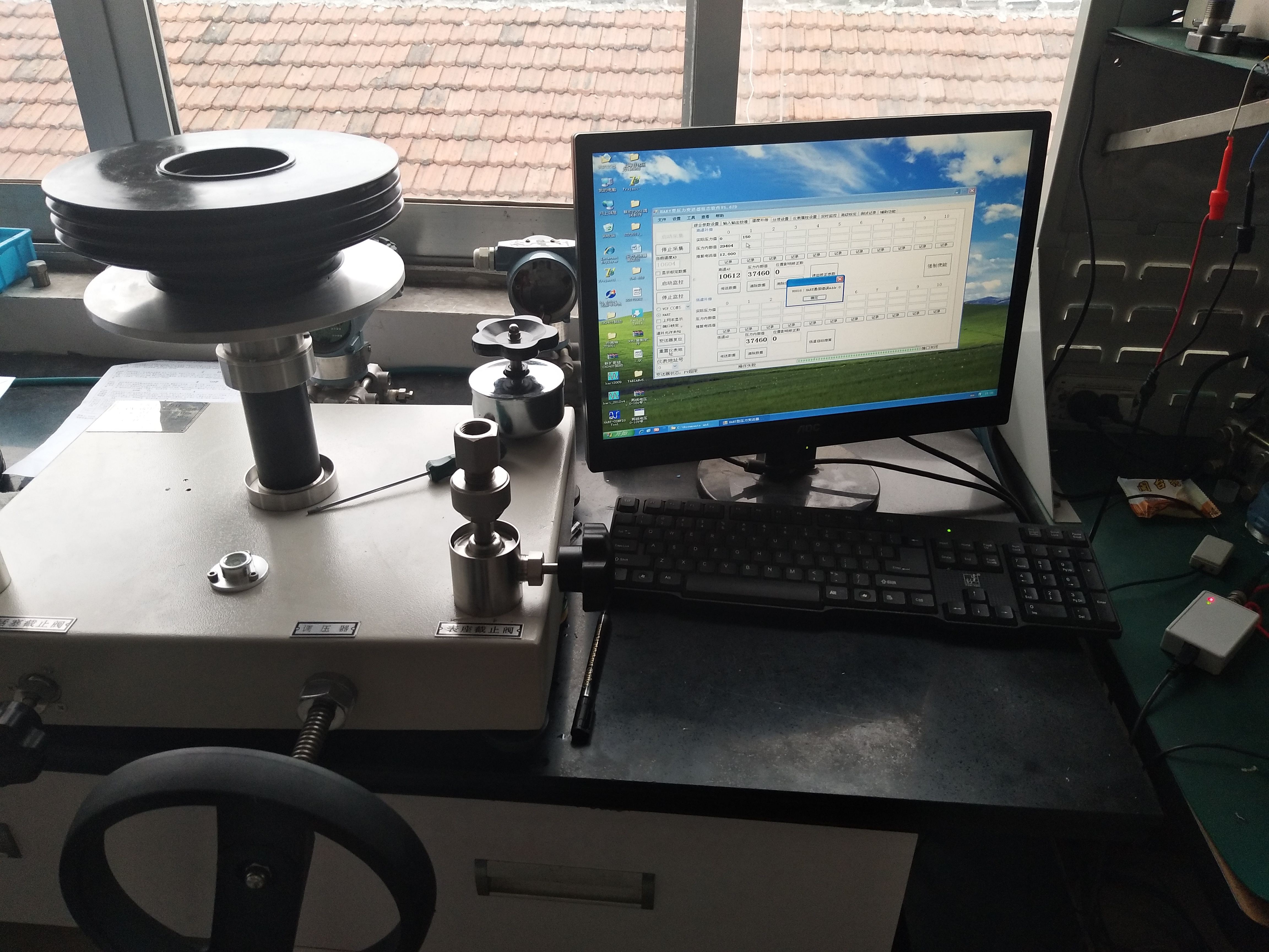 壓力校驗儀采用數控壓力源自動加壓,通過高精度數字式壓力傳感器獲取標準壓力值,利用計算機攝像處理系統識別壓力表讀數,按照相應的壓力儀表檢定規程,計算各項誤差值并作出檢定結論。計算機在接受“開始檢定”命令后,向數控壓力源發出檢定命令,數控系統精確控制系統壓力到達所需的壓力點,然后將標準壓力值傳輸到計算機,計算機通過圖像處理系統拍攝并識別壓力表讀數,然后電控輕敲頭模擬人手敲擊被檢表(按照規程要求),再識別一次被檢表的讀數,識別結果同高精度壓力傳感器的標準壓力值相比較計算,得出壓力儀表的各項示值誤差。所以各種壓力變送器必須通過效驗儀,