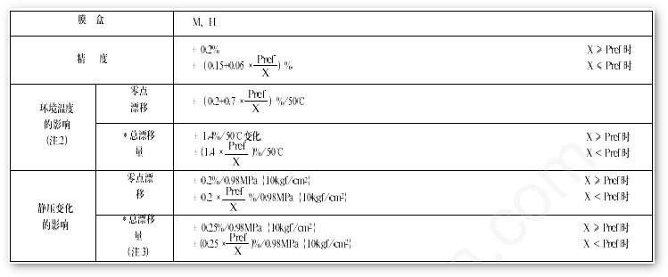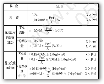 三、EJA118W精度、環(huán)境溫度以及靜壓變化的影響說(shuō)明圖
