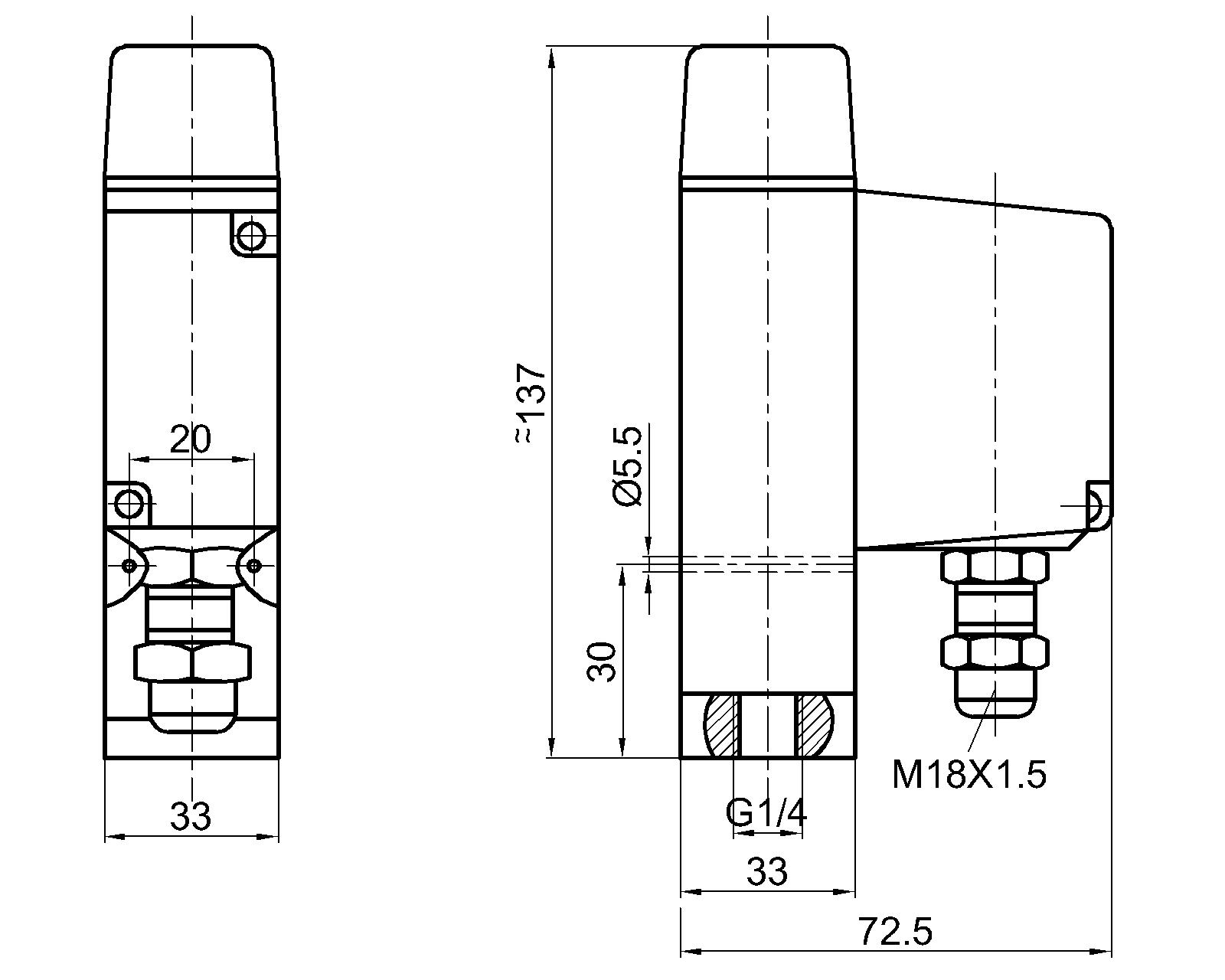 注: slk-Y18C-01,02的調(diào)節(jié)方式為用帶塑料保護殼的內(nèi)六角螺釘調(diào)節(jié)設(shè)定值,03,04的調(diào)節(jié)方式為用帶刻度旋鈕調(diào)節(jié)設(shè)定值。 |