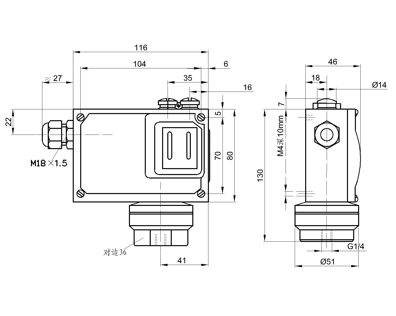 注: ① 耐壓值的含義:在實際工作中,即使短暫的壓力峰值也不能超過這個值。 ② X型壓力控制器:序號01~05的耐壓值為0.5Mpa;06~09的耐壓值為3.0Mpa; 10~13的耐壓值為6.0Mpa。 ③ X型對應外形尺寸07,08,只有連接螺紋的區別,此處不另加標注。 |