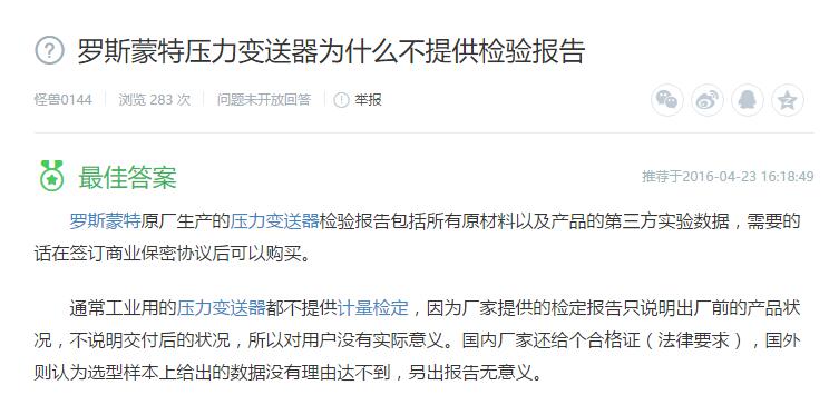 1、羅斯蒙特壓力變送器為什么不提供檢驗報告?