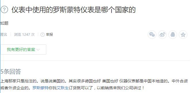 上海那家只是搶注的。說是說美國的。其實很多德國也好 美國也好 儀器儀表都是中國本地造的。中外合資或者外資企業的。羅斯蒙特你找艾默生訂貨就可以了,以前銷售來我們公司講過!如果還有疑問請訪問www.jyweiye.cn
