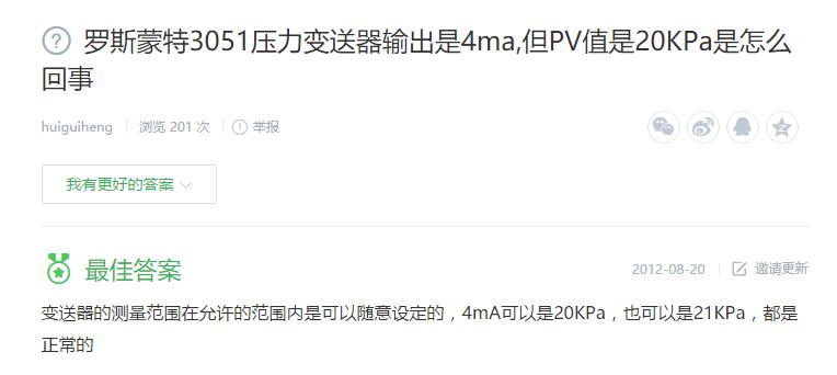 2、羅斯蒙特3051壓力變送器輸出是4ma,但PV值是20KPa是怎么回事?