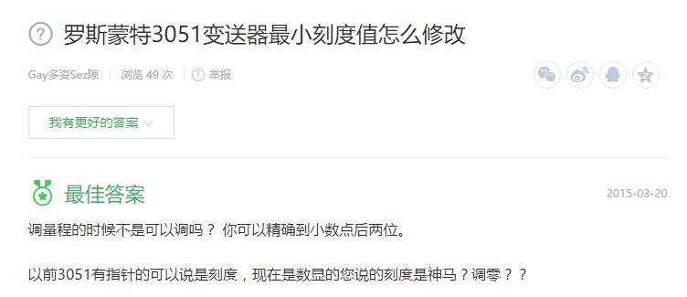 調量程的時候不是可以調嗎? 你可以精確到小數點后兩位。以前3051有指針的可以說是刻度,現在是數顯的您說的刻度是神馬?調零??