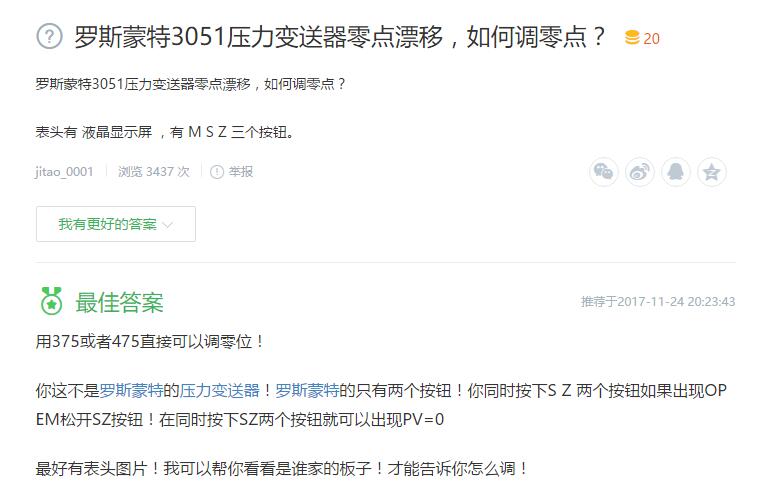 2、羅斯蒙特3051壓力變送器零點(diǎn)漂移,如何調(diào)零點(diǎn)?(羅斯蒙特3051壓力變送器零點(diǎn)漂移,如何調(diào)零點(diǎn)?表頭有 液晶顯示屏 ,有 M S Z 三個(gè)按鈕。)