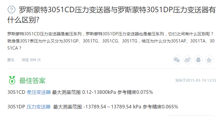 2、羅斯蒙特3051CD壓力變送器與羅斯蒙特3051DP壓力變送器有什么區別?(羅斯蒙特3051CD壓力變送器是差壓系列,羅斯蒙特3051DP壓力變送器也是差壓系列,它們之間有什么區別呢? 就像是3051表壓為什么又分為3051GP、3051TG、3051CG、3051TG,絕壓為什么分為3051AP、3051TA、3051CA?)