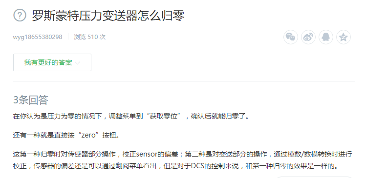 這第一種歸零時對傳感器部分操作,校正sensor的偏差;第二種是對變送部分的操作,通過模數(shù)/數(shù)模轉(zhuǎn)換時進行校正,傳感器的偏差還是可以通過翻閱菜單看出,但是對于DCS的控制來說,和第一種歸零的效果是一樣的。