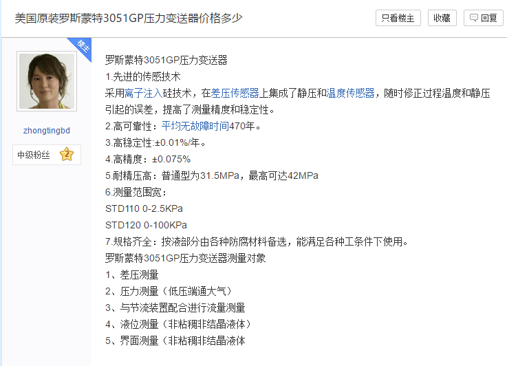2、美國原裝羅斯蒙特3051GP壓力變送器價格多少