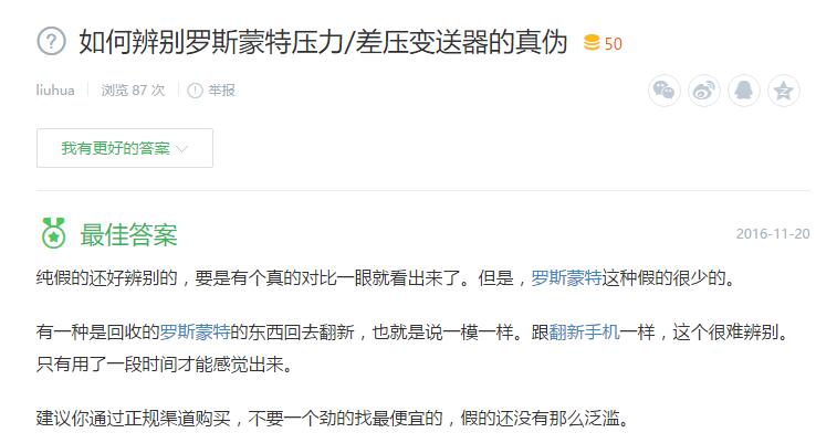 1、如何辨別羅斯蒙特壓力/差壓變送器的真?zhèn)危?/strong>