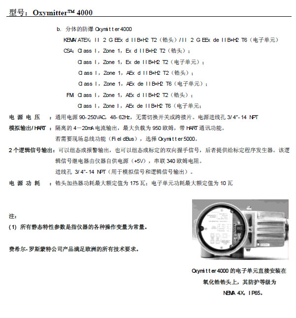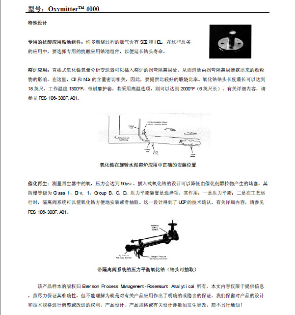 羅斯蒙特氧化鋯分析儀主要用于鍋爐的氧量分析,對(duì)煙氣的含氧量做出準(zhǔn)確的判斷;主要特點(diǎn):改進(jìn)了氧化鋯探頭鉑電極的制作工藝及檢測(cè)器的結(jié)構(gòu)設(shè)計(jì),延長(zhǎng)了傳感器的連續(xù)使用壽命,輸入輸出采用光電隔離,使儀表的抗干擾能力大大提高,智能化程度高,所有的參數(shù)通過(guò)儀表的鍵盤(pán)設(shè)定;多功能數(shù)字顯示,儀表除顯示當(dāng)時(shí)的氧含量外,還可通過(guò)鍵盤(pán)在線查看當(dāng)時(shí)的氧勢(shì)、爐溫、加熱電壓、測(cè)量量程、上、下限報(bào)警等內(nèi)容,并在儀表發(fā)生故障時(shí)顯示八種故障類(lèi)別信號(hào)提示。