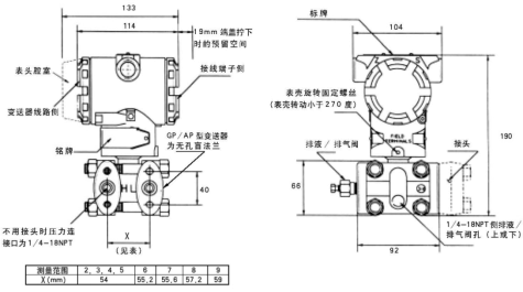 變送器任意一側加0~31.02MPa壓力不會引起損壞,在3.45kPa~31.02Mpa的靜壓范圍內工作時符合性能規格要求