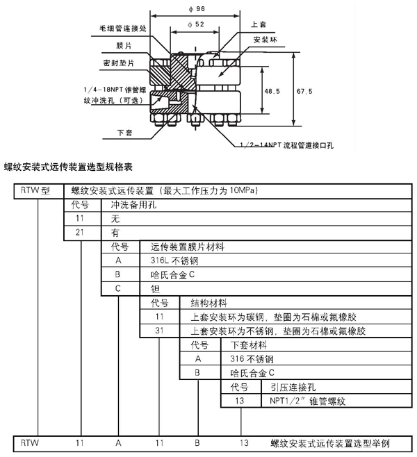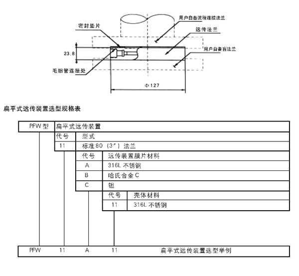 (零基準校驗范圍,參考條件下,硅油充液,316L不銹鋼隔離膜片)