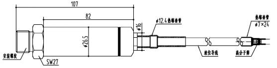 SLK800Y潛水型壓力變送器采用擴散硅壓力芯體作為敏感元件,內置處理電路將傳感器毫伏信號轉換成標準電壓﹑電流信號輸出,可直接與計算機、控制儀表﹑顯示儀表等相連。選用高穩定性和高可靠性的壓阻式壓力傳感器和高性能的變送器專用電路,整體性能穩定可靠,可進行遠距離信號傳輸。防護等級IP68,可直接投入到被測液體中,進行管道式安裝或投入式安裝,體積小巧、重量輕、易安裝、使用方便,可長期浸入液體中工作,能夠適用于環境較惡劣的露天現場。