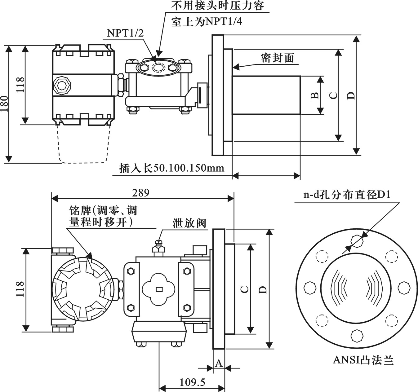 SLK1151型法蘭式液位變送器測量液柱靜壓頭,此壓力等于取壓呂以上的液柱高度乘以液體的特定比重,與容器的容積和形狀無關。測量的質量在很大程度上取決于變送器和導壓管的安裝是否正確。SLK1151LT型變送器是設計用在惡劣的環境中的,在選擇安裝場所時,要小心地減少變送器所受到的溫度梯度、溫度波動、振動的沖擊。