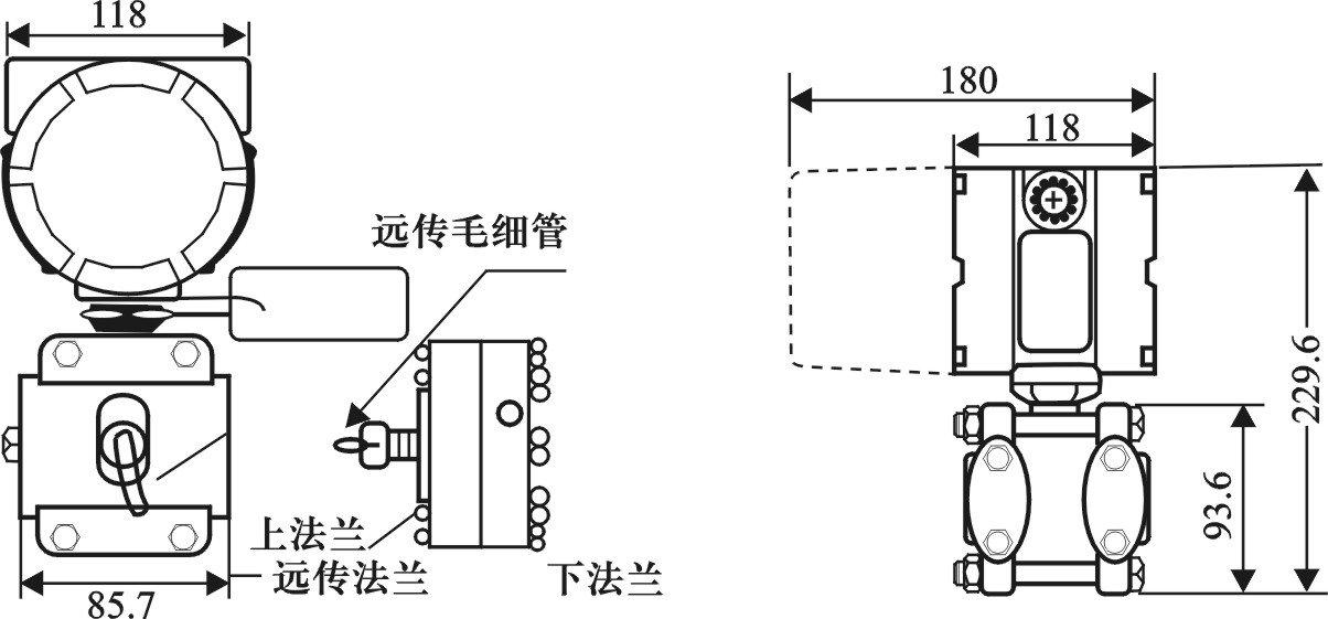 3、被測介質中有固體懸浮物或高粘度易堵塞變送器接頭和壓力容室時;
