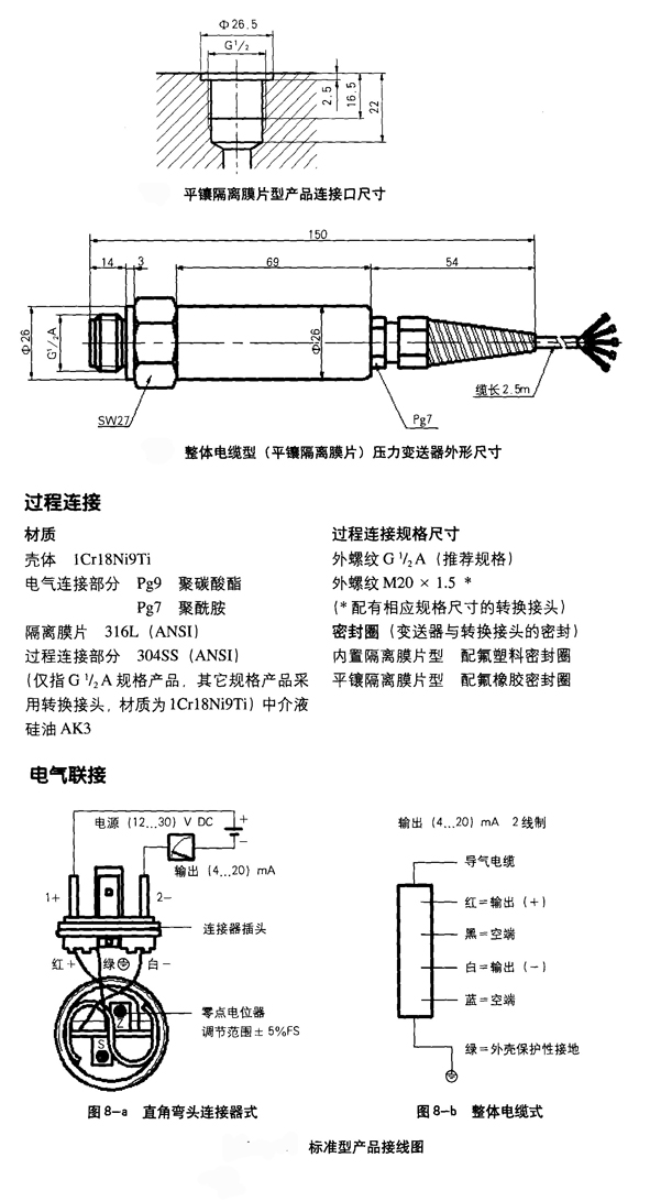 .不銹鋼殼體.防護(hù)等級(jí)IP65和IP68(整體電纜型)