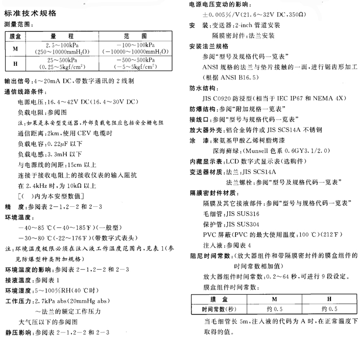 用來測量液體、氣體和蒸汽的流量、液位、密度和壓力,然后輸出與測得差壓相對應4~20mA DC電流信號。密封隔膜是用于防止管道中的介質直接進入變送器里的壓力傳感器組件中,它與變送器之間是靠注滿流體的毛細管連接起來的。